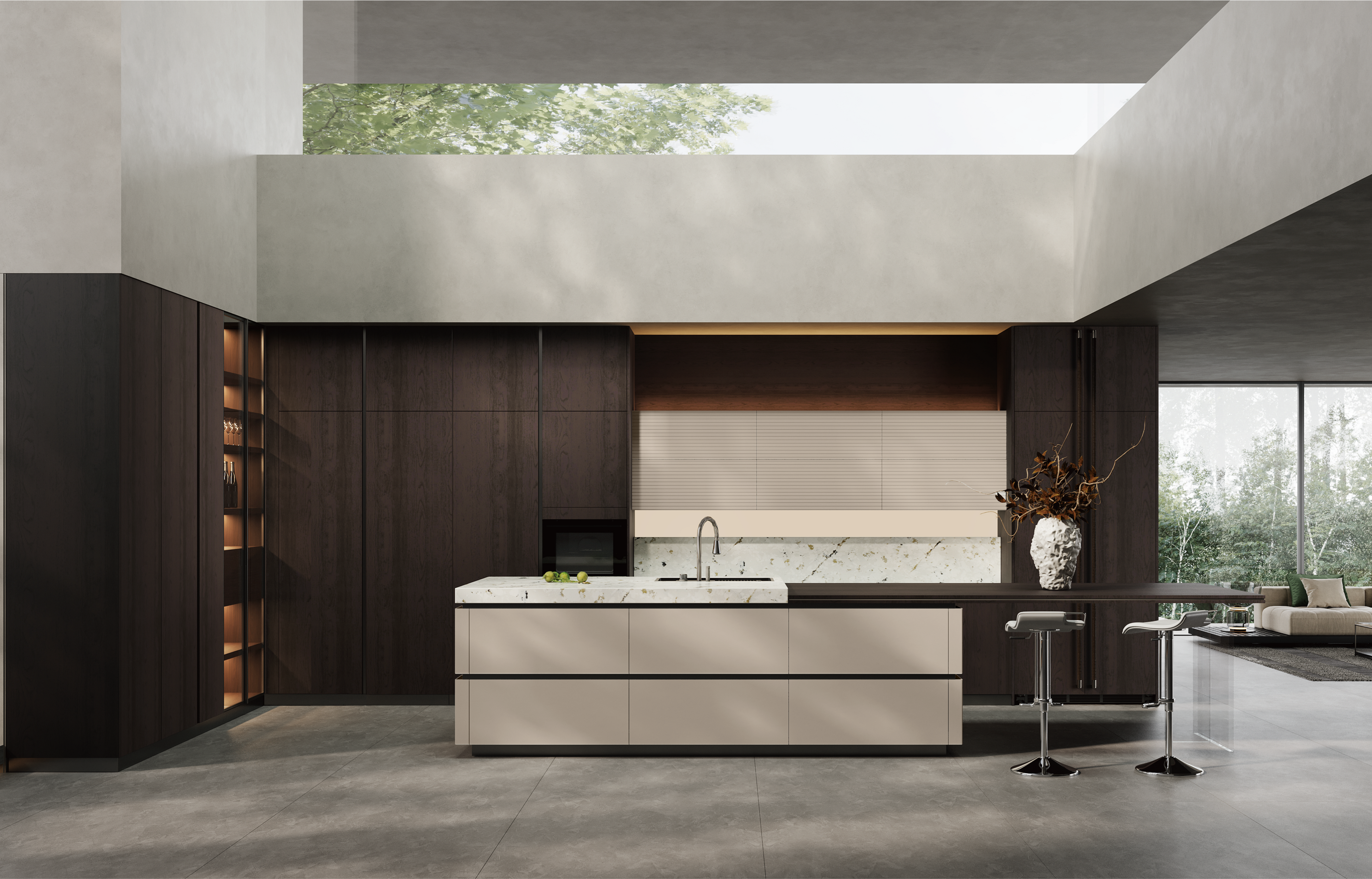 通过PG国际厨柜量体裁柜,定制出适合主厨下厨的烹饪区和洗涤区的舒适高度。